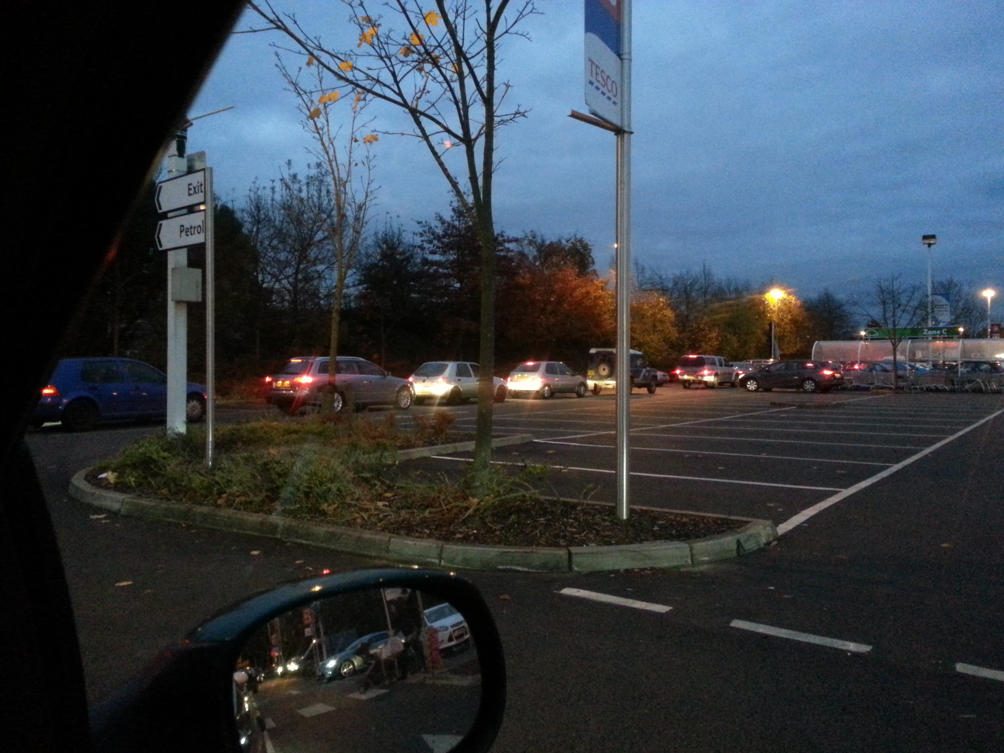 Baby J was in the back getting very crabby, and grouchy so I let him and Loz get out and I’d meet them at the store. Not long after they left the car I noticed a trolley boy, and another Tesco employee were taking trolleys to the end of the queue (about 5 cars behind me), and barricading the entrance, nothing could now get in, and nothing seemed to be getting out.