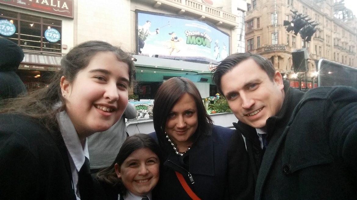 Hosted by Vue on Leicester Square in the heart of London, Shaun and his flock came to the Big City to spread a little country charm across one of London’s landmarks, along with a massive Shaun the Sheep branded double-decker. Before the doors opened we had plenty of time to take some pictures and mess around on the Green Carpet, Georgia and her friend were particularly star-struck to see Rizzle Kicks belting out a few tunes. According to the Daily Mail a whole host of celebs were in attendance, including Ed Sheeran and Andy Serkis (off of Gollum), it was also lovely to bump into the lovely Vicki from Honest Mum who we’d met at the Paddington Première last year.