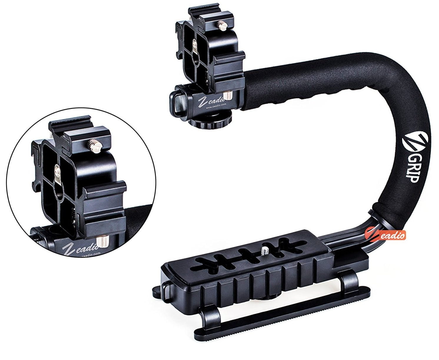 I picked up this guy just before Christmas to make self filming on the go a little easier. It holds the camera, and up to three additional hot shoe devices. Perfect for filming with the light and microphone. It’s got a squishy foam handle that lets you hold the camera out at arms length, and gives you a some stability when filming other stuff. I’ve also got a Joby Gorilla Pod that also allows you to self film – those are a bit more expensive though (and don’t have a hot shoe adaptor. You can also fix the Zeadio Stabiliser onto the tripod, which is what I generally do. The triple hot shoe mount is excellent.